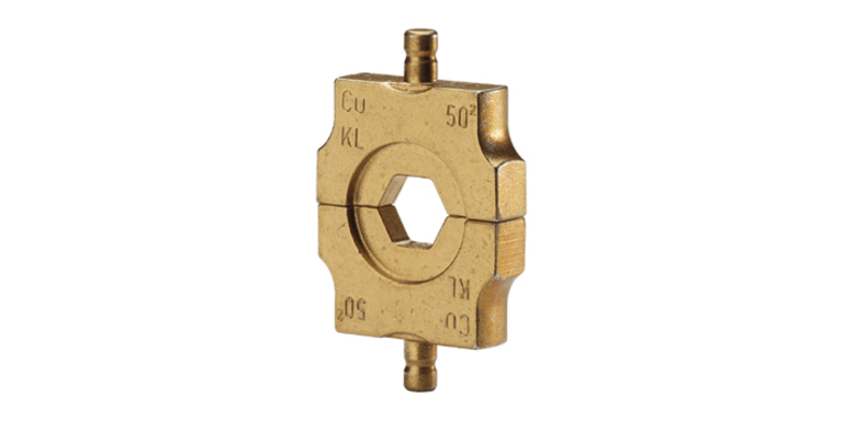 Klauke presbakker findes i 16 forskellige typer der passer til Klaukes presværktøj type K354 og EK354 for både kobber og aluminiums ledere for en sikker forbindelse
